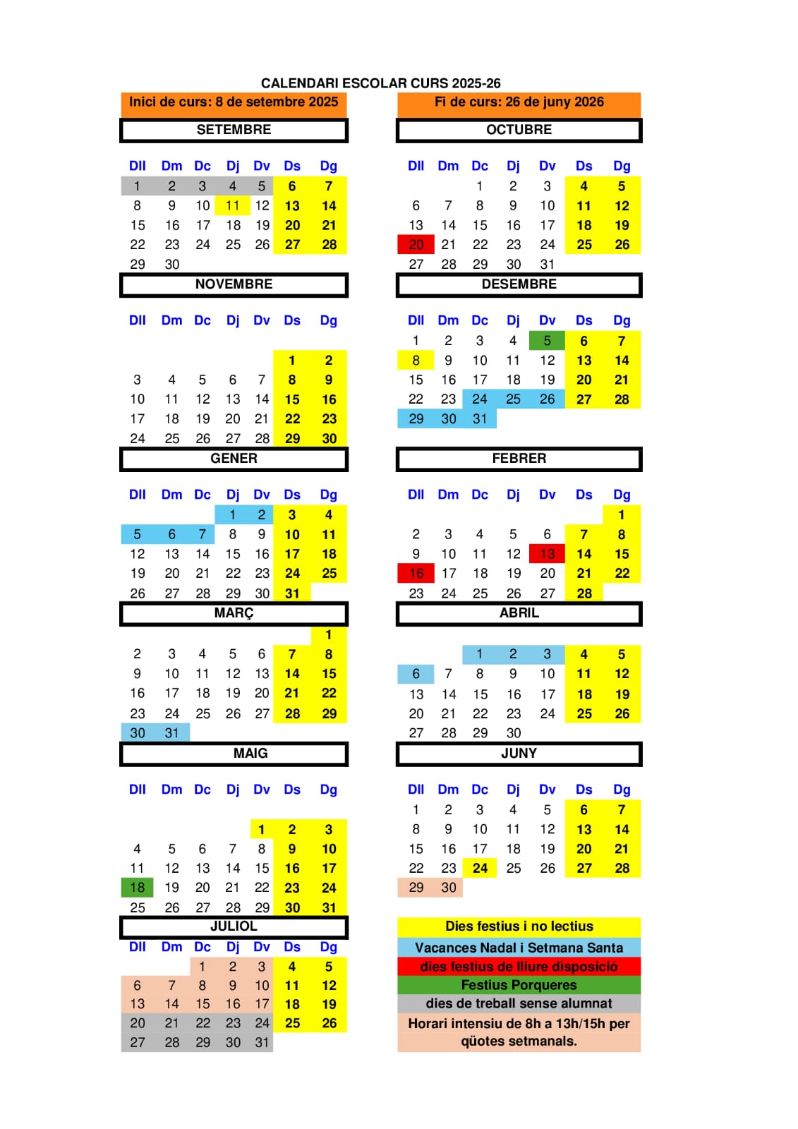 Calendari escolar curs 2025-2026