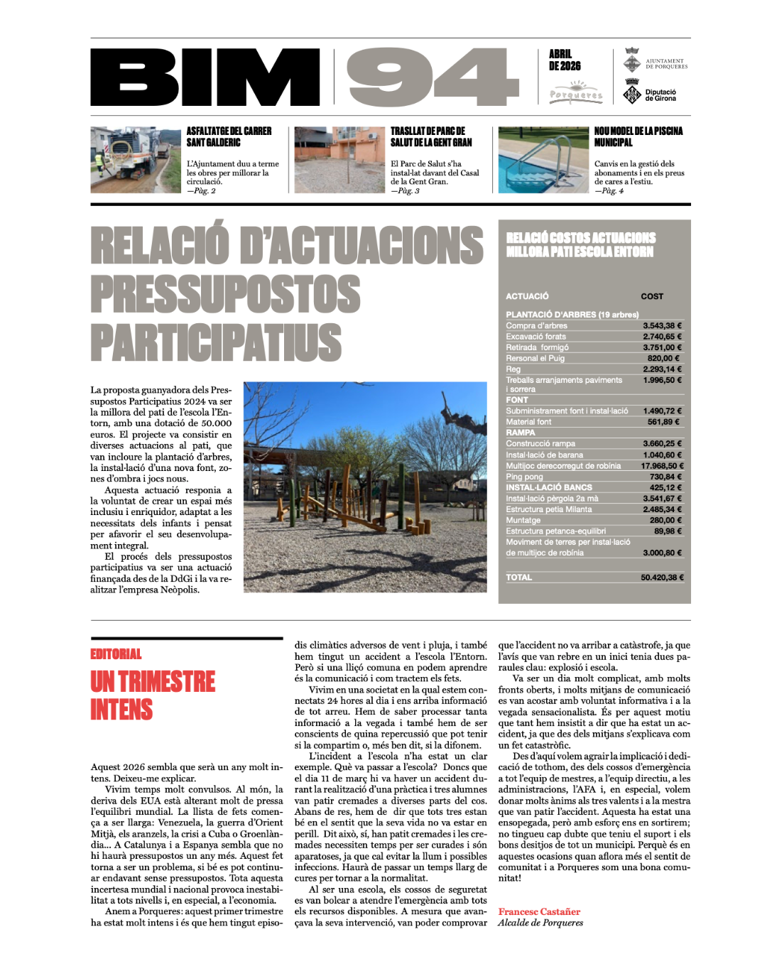 Ja podeu consultar el BIM 94 en format digital aquí. Hi podreu trobar les notícies més destacades i l’agenda d’abril i maig.En breu rebreu la versió impresa a la bústia de casa.